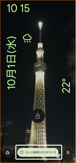 画面下部に「ロック画面のカスタマイズ」と表示されるので、タップしてロック解除すると、「壁紙とスタイル」画面が表示されます。