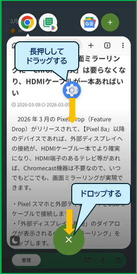 バブルをタップすると、フローティングウィンドウに戻ります。