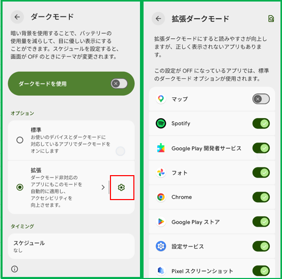 拡張ダークモードは、すべての非対応アプリに一律に強制適用でしたが、アプリごとにオン/オフの制御ができるようになりました。