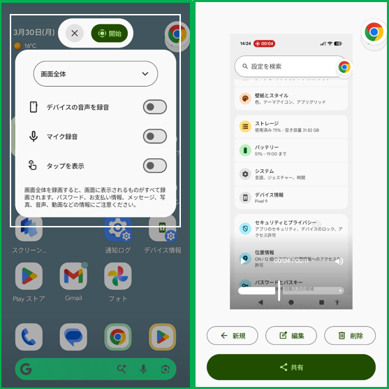 画面録画のUIが変更になって、さらに録画後の編集・共有・削除が素早く行えるようになりました。