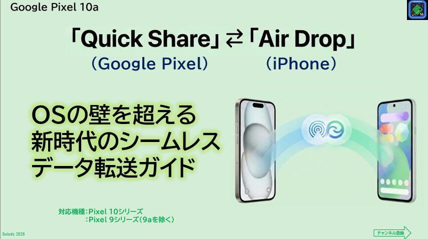 Googleの「Quick Share」 が Appleの 「Air Drop」と連携し、PixelユーザーとiPhone/iPad/Macユーザー間で写真・動画・ファイルを直接送受信できるようになっています。