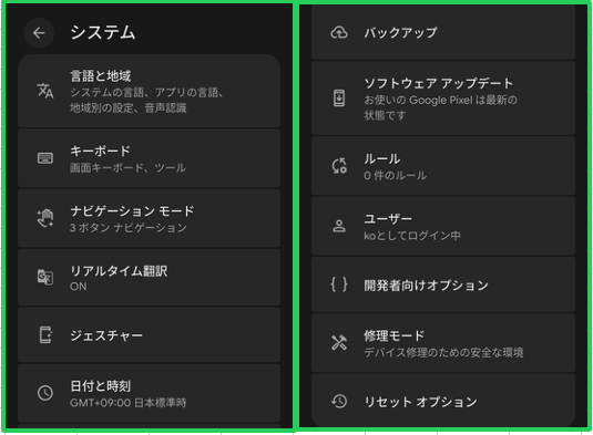 ただ単なる設定項目の羅列から、「デバイスの更新」「言語と入力」といったカテゴリごとに整理されて、視認性が大幅に向上しています。