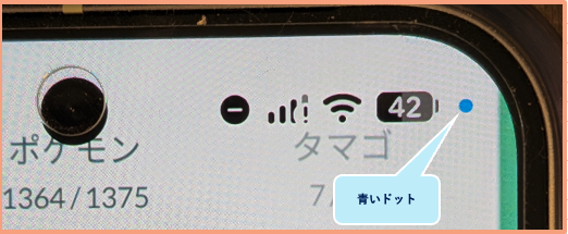 アプリが位置情報にアクセスしている際、ステータスバーの右上に青いドット(インジケーター)が表示されるようになります。