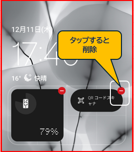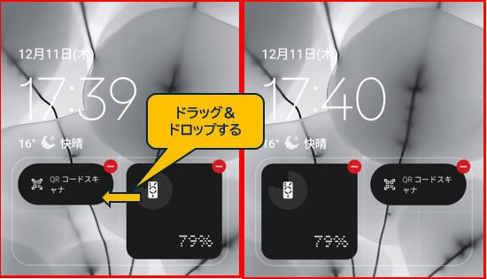 ・ウイジェットの並べ替え:長押しして、ドラッグ&ドロップします。