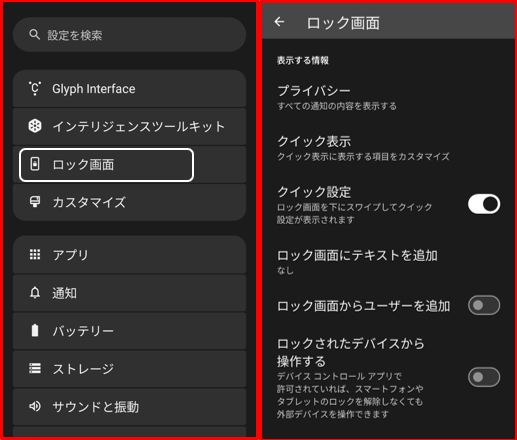 1)2)以外でも、ロック画面をカスタマイズできる設定項目があります。