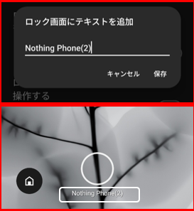 ロック画面の下側に任意のテキストを、たとえば「機種名」「ユーザー名」「連絡先」等をユーザーが自由に追加できます。