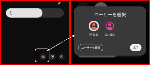 さらに、【設定】>【システム】>【ユーザー】>【複数のユーザーを許可する】トグルを右にスライドして有効にしていると、ロック画面からもユーザーの切り替えが可能になります。