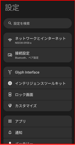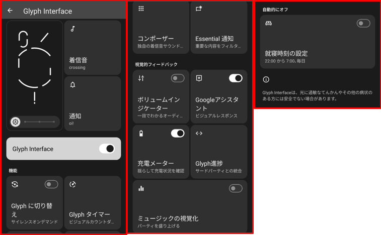・タップ:【Glyph Interface】のON/OFFの切り替え