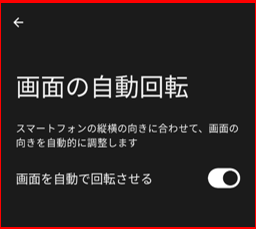 ・タップ:「画面を自動で回転させる」のON/OFFの切り替え