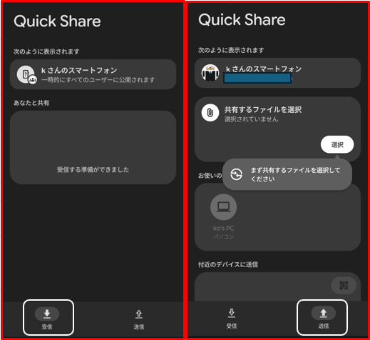 ・タップ:接続先の機器を指定して、画面のキャストができる