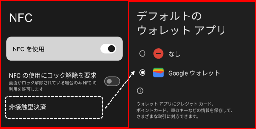 ・タップ:「NFCを使用」のON/OFFの切り替え