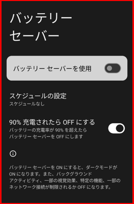 ・タップ:「バッテリーセーバーを使用」ON/OFFの切り替え