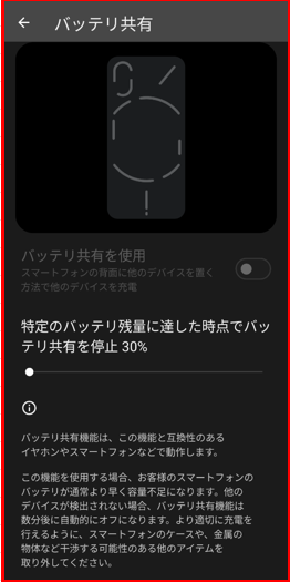 ・タップ:「バッテリー共有を使用」ON/OFFの切り替え