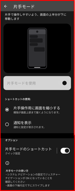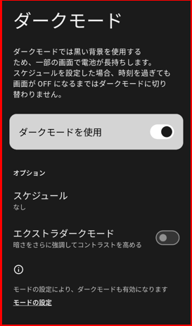・タップ:「タークモードを使用」のON/OFFの切り替え