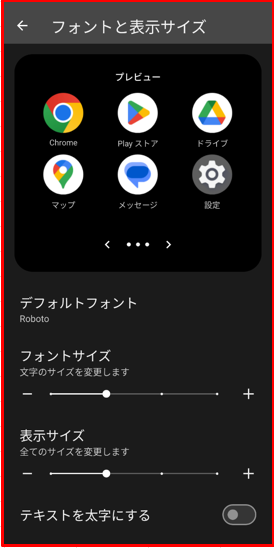 ・長押し:【表示サイズとテキスト】の設定画面へ
