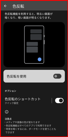 ・タップ:「色反転を使用する」のON/OFFの切り替え