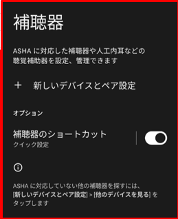 補聴器(Hearing Aids)は、ユーザー補助(アクセシビリティ)の一部で、Bluetooth対応の補聴器や人工内耳をAndroidデバイス(特にGoogle Pixelやその他対応端末)に(ペアリング)接続し、音声のストリーミングやカスタマイズを可能にするツールになります。