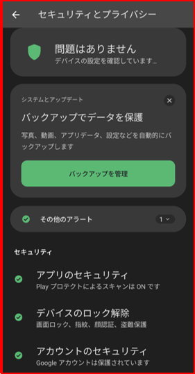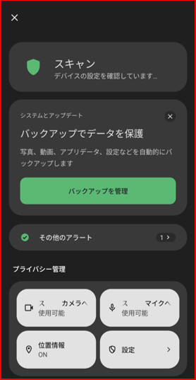・長押し:【セキュリティとプライバシー】設定画面へ