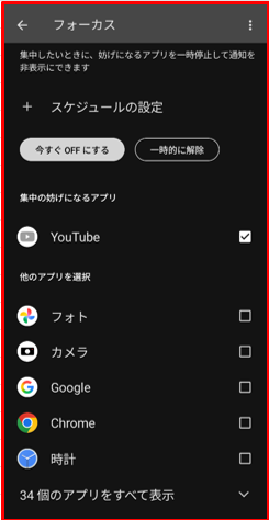 フォーカスモード(Focus Mode)は、Androidのデジタルウェルビーイング機能の一部で、ユーザーが集中力を維持するために、気が散るアプリや通知を一時的に制限するツールです。