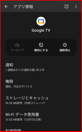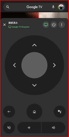 ・タップ:「Google TV」のリモコンになる ※ペアリングができない⇒【Google TV】アプリ情報画面で「ストレージ」と「キャッシュ」を消去して再起動。
