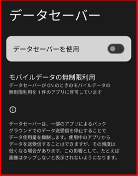 ・タップ:「データセーバーを使用」ON/OFFの切り替え