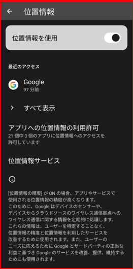 ・タップ:「位置情報の使用」のON/OFFの切り替え