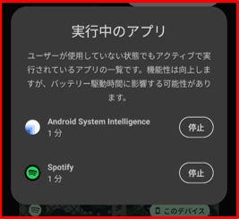 タップすると、バックグラウンドで実行中のアプリの確認と停止ができます。