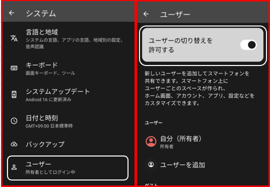 タップすると、ユーザーの切り替えや新規ユーザーの追加ができます。