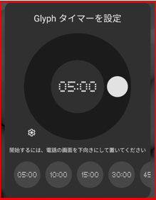 ・タップ:「Glyphタイマー」を開始する ※端末を伏せて利用します。